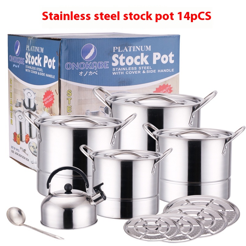 Color: ultra-high blue case stainless steel 14PCs (24-26-28-30CM) original color pot, ultra-high red box stainless steel 14PCs (24-26-28-30CM) natural color pot ultra-high yellow box stainless steel 14PCs color pot (24-26-28-30CM)